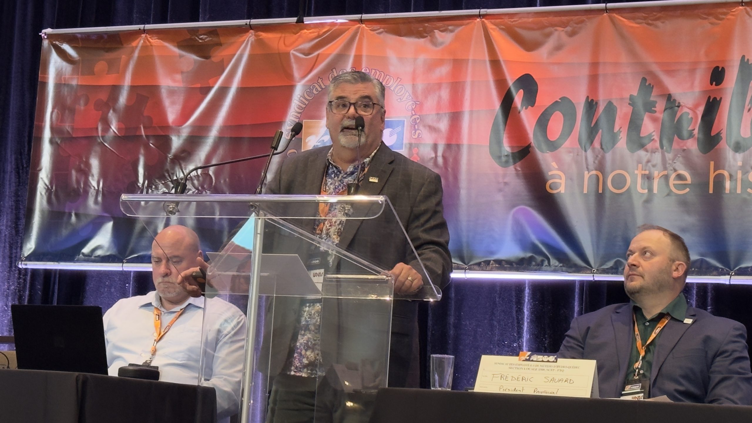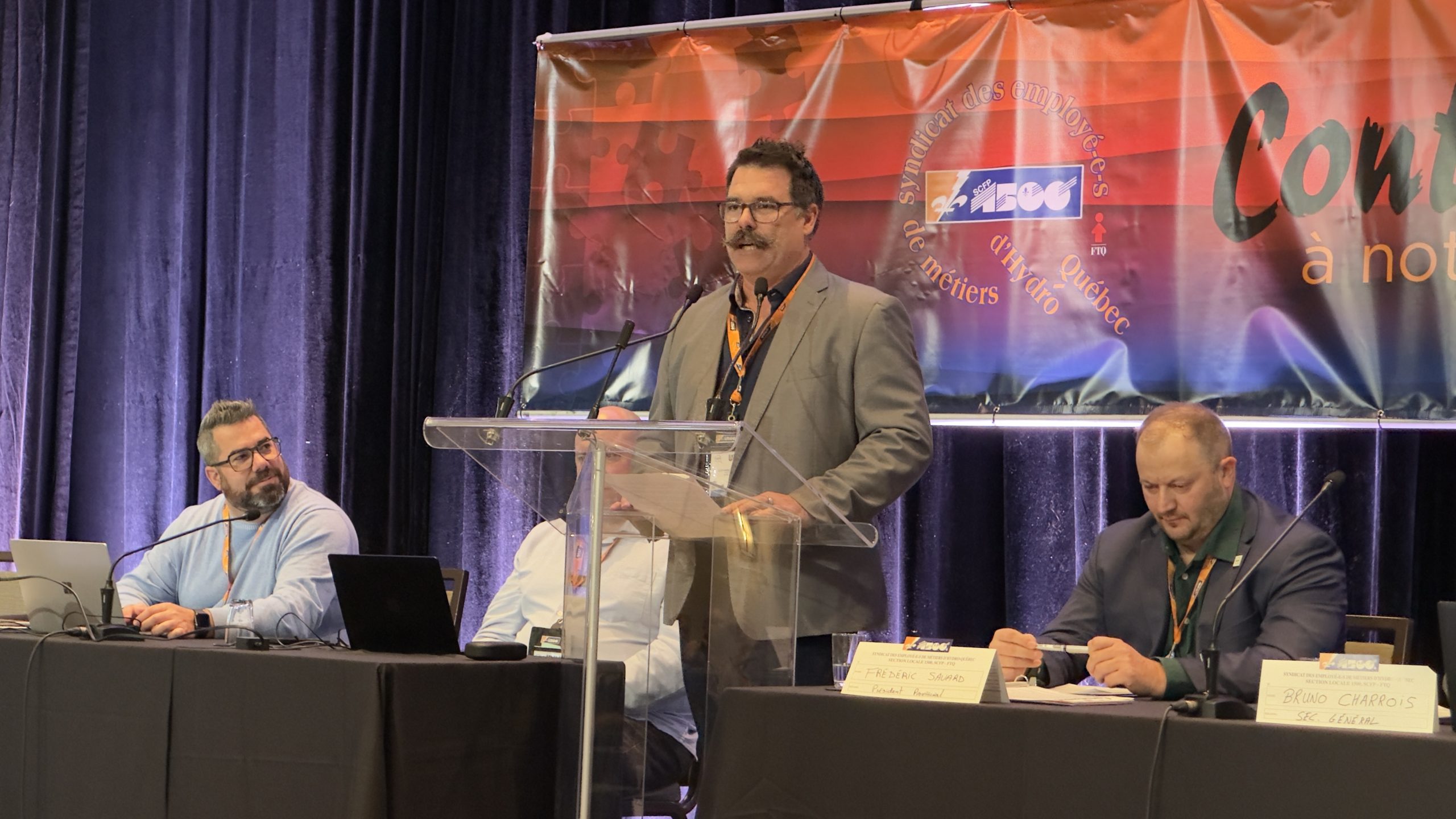 Le président du SCFP-Québec, Patrick Gloutney nous a adressé quelques mots sur la mobilisation vue de deux (2) angles : la mobilisation dont on fait preuve face à Hydro-Québec depuis des mois et celle que nous devrons tous devoir mettre en place afin de garder le gouvernement loin de notre régie interne. Il trouve impressionnant de voir ce que nous avons accompli dans les derniers mois.