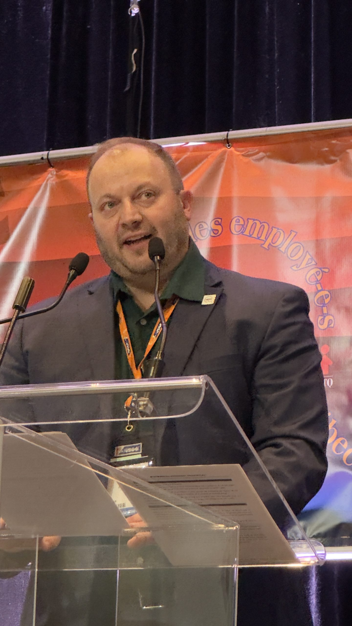 Moment très fort et solennel sur le plancher du congrès lorsque le président demanda une minute de silence pour le confrère de la région Abitibi qui nous a quittés trop tôt l’année dernière à l’âge de 44 ans.